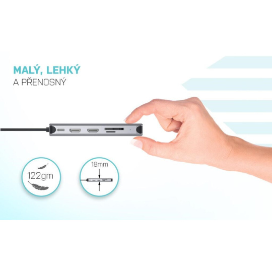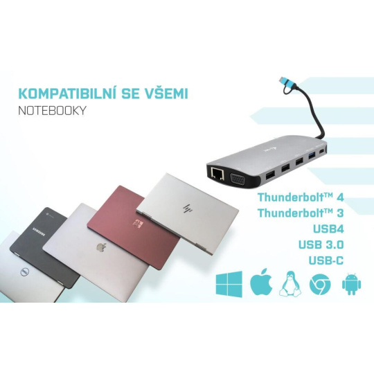 Výkonná, no napriek tomu malá a prenosná dokovacia stanica, ktorá podporuje výstup až na tri externé monitory. Dok možno použiť prakticky s akýmkoľvek notebookom, keďže podporuje pripojenie ku všetkým bežným portom: USB 3.0, USB-C, USB4 a Thunderbolt™ 3/4, a zároveň podporuje všetky bežné súčasné operačné systémy. Pripojenie k trom monitorom však bude možné len v prípade notebooku s portom Thunderbolt™ 3/4, prípadne USB-C portom podporujúcim prenos videa (tzv. USB-C DP Alt mode).