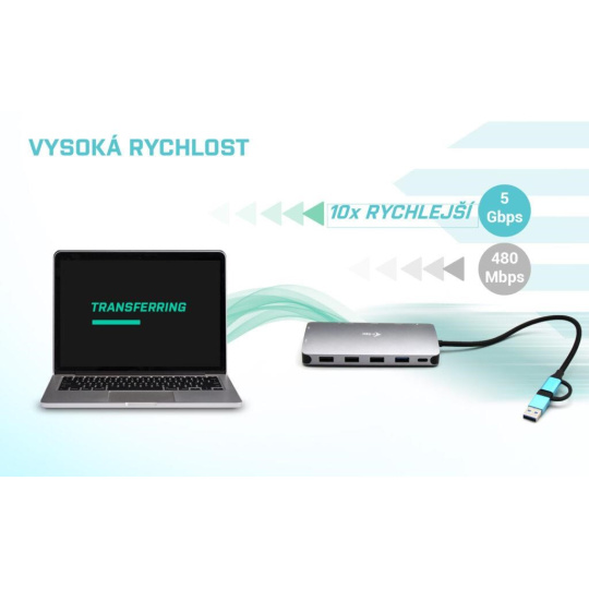 - Dokovacia stanica podporuje až 100W napájania pripojeného notebooku alebo tabletu
