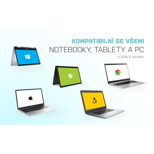 - 1x USB-C 3.1, Gen. 1 kábel na pripojenie HUB-u k notebooku, tabletu, PC alebo smartfónu