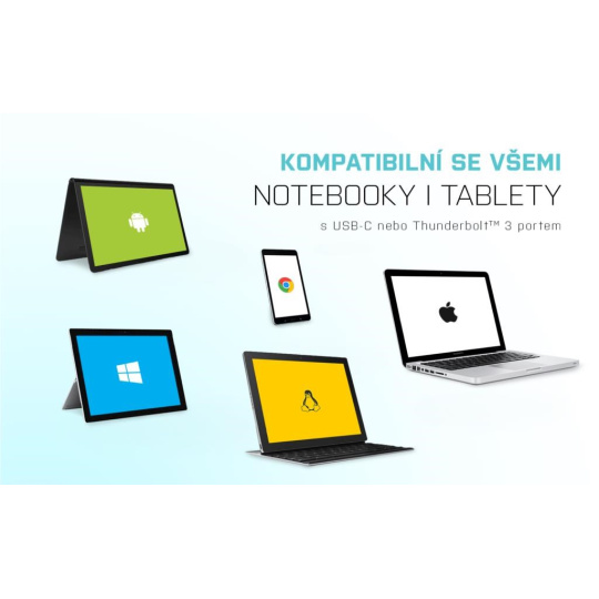 Káblový adaptér je vhodný na použitie so všetkými notebookmi, ktoré sú vybavené konektorom USB-C s podporou prenosu videa (režim DisplayPort alt) alebo konektorom Thunderbolt 3 (vrátane Apple MacBook 2015 alebo Apple MacBook Pro 2016 a novších). Konektory USB-C a Thunderbolt 3 majú viacero výhod.