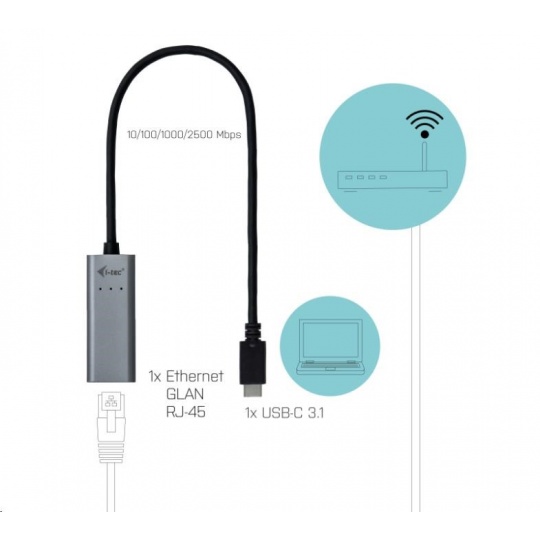 i-tec USB-C Metal 2.5Gbps ethernetový adaptér