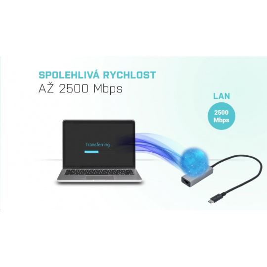 Moderný a veľmi rýchly sieťový adaptér, ktorý umožňuje ľahké, rýchle a spoľahlivé pripojenie notebooku, tabletu alebo počítača s portom USB-C alebo Thunderbolt 3/4 k firemnej sieti a internetu. Adaptér dokáže pracovať rýchlosťou 10/100/1000/2500 Mb/s, takže si môžete užívať bezpečné vysokorýchlostné internetové pripojenie bez akýchkoľvek výpadkov.