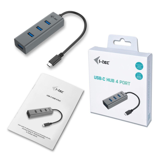 i-tec USB-C Metal 4-portový HUB, 4x USB 3.0 port na pripojenie zariadenia USB-A k novému konektoru USB-C, pre notebook tablet smartfón PC s konektorom USB-C, kompatibilný s Thunderbolt 3, Windows, Mac OS, Android, Chrome