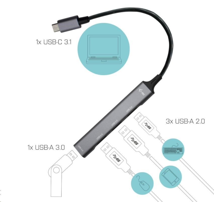 i-tec USB-C Metal HUB 1x USB 3.0 + 3x USB 2.0
