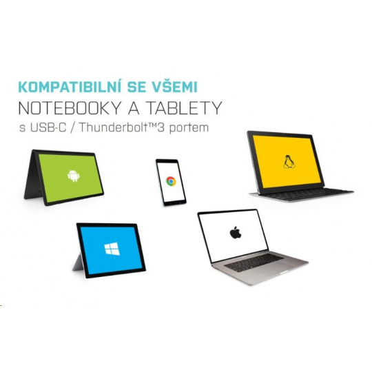 Dokovacia stanica je tiež plne kompatibilná s notebookmi a tabletmi vybavenými rozhraním Thunderbolt 3.