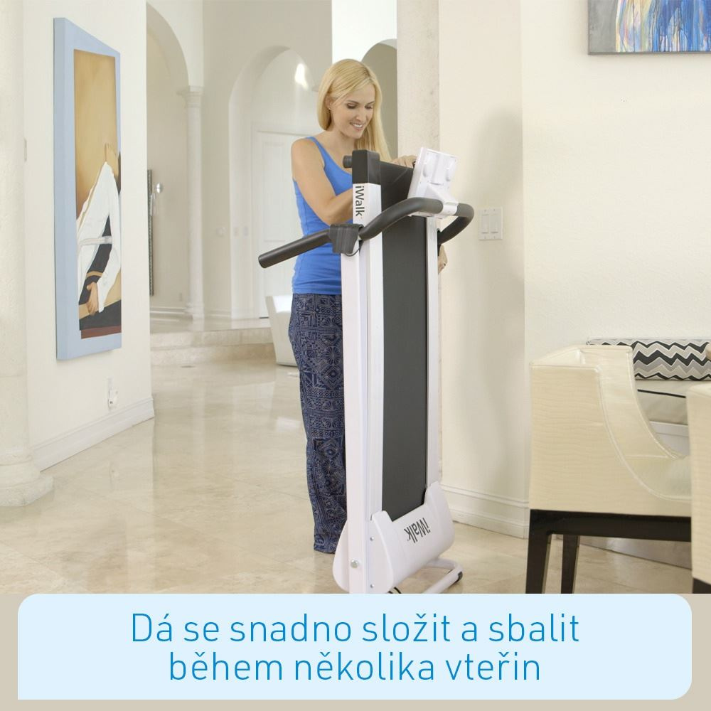 iWalk je inovatívna revolúcia v bežeckých pásoch! Jednoducho sa zloží a odloží behom niekoľkých sekúnd. Váži len 25 kilogramov a vďaka praktickému systému kolies ho môžete použiť kdekoľvek.