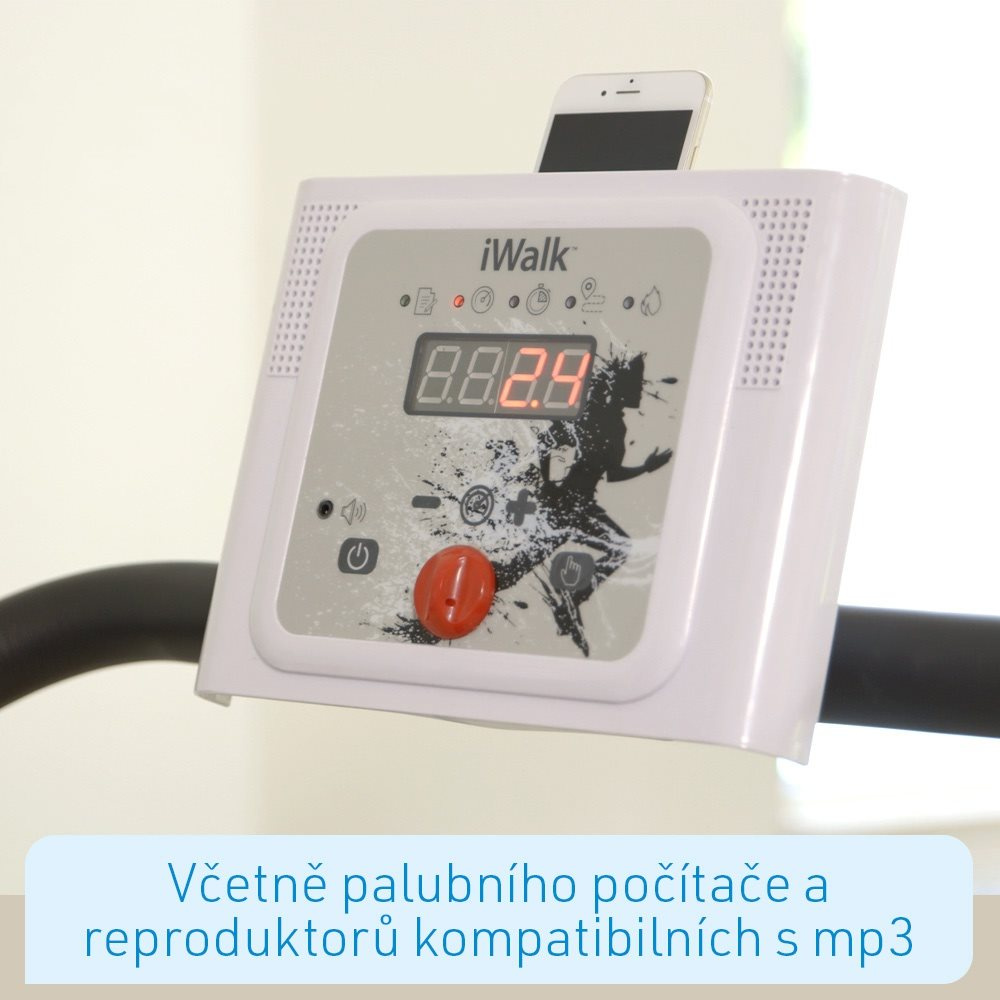 S iWalk je možný plynulý domácí tréning od chôdze po beh (1-10 km/h), a preto je ideálny pre všetky vekové skupiny. Bežecký pás je vybavený tiež palubným počítačom a reproduktormi kompatibilnými s mp3. Môžete si vybrať zo 6 prednastavených tréningových programov, a preto je ideálny pre každú úroveň zdatnosti.