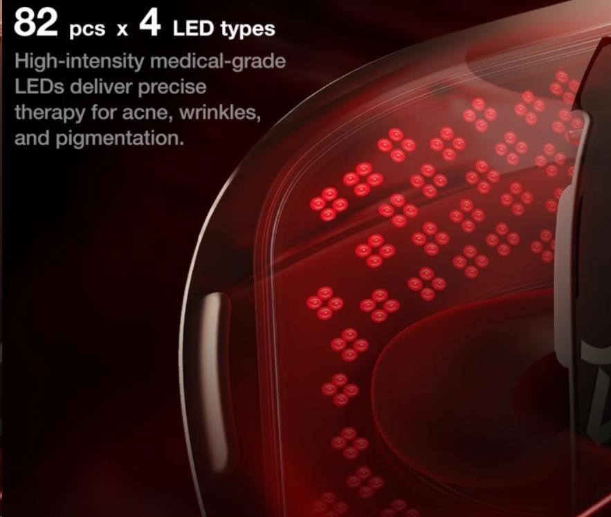- Profesionálna 4-spektrálna LED terapia: Vybavená celkovo 328 (82 x 4) vysoko intenzívnymi LED diódami pre maximálne pokrytie a účinnosť.