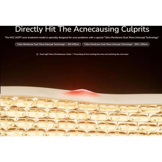 Tento inovatívny prístroj využíva unikátnu "svetelno-biologickú" technológiu na maximálny efekt. Dvojitá rádiová vlna intenzívneho pulzného svetla preniká hlboko do pokožky, kde ničí baktérie Propionibacterium acnes a reguluje produkciu mazu.