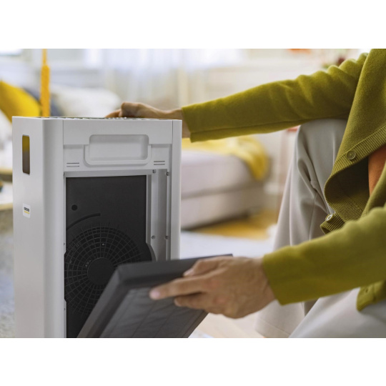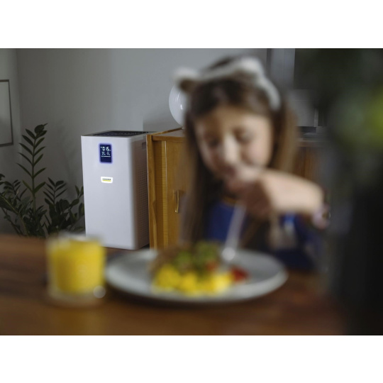 Ideálna čistička vzduchu pre väčšie miestnosti, obývačky a pracoviská: Čistička vzduchu AF 50 zbavuje vzduch v miestnosti alergénov, znečisťujúcich látok a choroboplodných zárodkov pomocou viacvrstvového filtračného systému. Medzi ďalšie funkcie patrí náplň s aktívnym uhlím, displej pre alfanumerické zobrazenie kvality vzduchu v časticiach PM2,5 v µg/m3 a pre zobrazenie kvality vzduchu vo forme farebného kódu, teploty a relatívnej vlhkosti. Čistička vzduchu je vynikajúcou voľbou aj vďaka funkcii časovača, detskej poistke, nočnému režimu a veľmi tichému prevádzke, ako aj účinnosti filtra 99,95 % pre častice veľkosti 0,3 µm a kvalitnému laserovému senzoru pre automatický režim. To znamená, že automatický režim a úroveň výkonu sa automaticky prispôsobia úrovni znečistenia ovzdušia. Filter má navyše životnosť približne jeden rok v závislosti od úrovne znečistenia ovzdušia a intenzity používania.