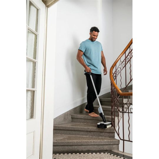 ** Čistič podláh Kärcher skracuje dobu čistenia až o 50 %, pretože bežné nečistoty z domácnosti možno odstrániť z tvrdých podláh v jednom kroku, bez nutnosti vysávania pred vytieraním.