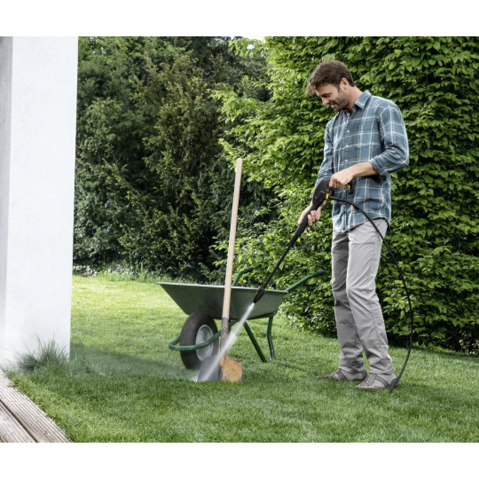 Tlaková umývačka K 2 Universal si poradí s nečistotami okolo celého domu. Jednoducho s ňou vyčistíte špinu zo záhradného nábytku, náradia alebo bicykla. Vďaka nízkej hmotnosti a pohodlnému úchopu sa navyše ľahko prenáša. Kompaktné telo prístroja ukrýva výkonný motor s výkonom 1400 W, ktorý vytvorí vodný prúd s tlakom až 110 barov. Trojmetrová vysokotlaková hadica uľahčí upratovanie okolo domu aj čistenie ťažko dostupných miest. Navyše ju od prístroja ľahko odpojíte. Presná rotačná hlava účinne nasmeruje vodu tam, kde je práve potrebné, a zkrotí aj odolnejšie nečistoty. A keď sa všetko leskne čistotou, hadicu, tlakové pištole aj napájací kábel ľahko zasuniete do prístroja a jednoducho uskladníte aj na malom priestore.