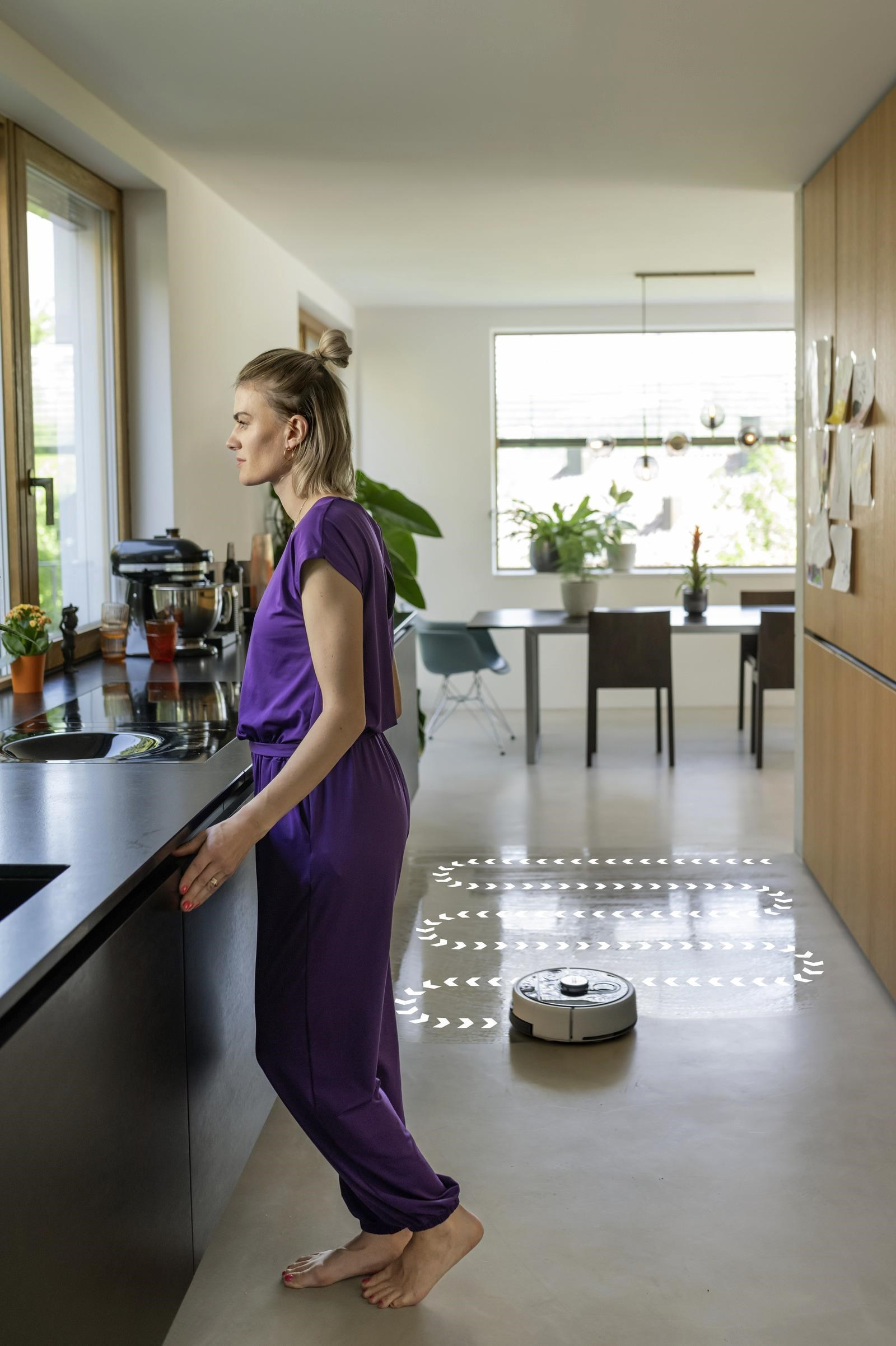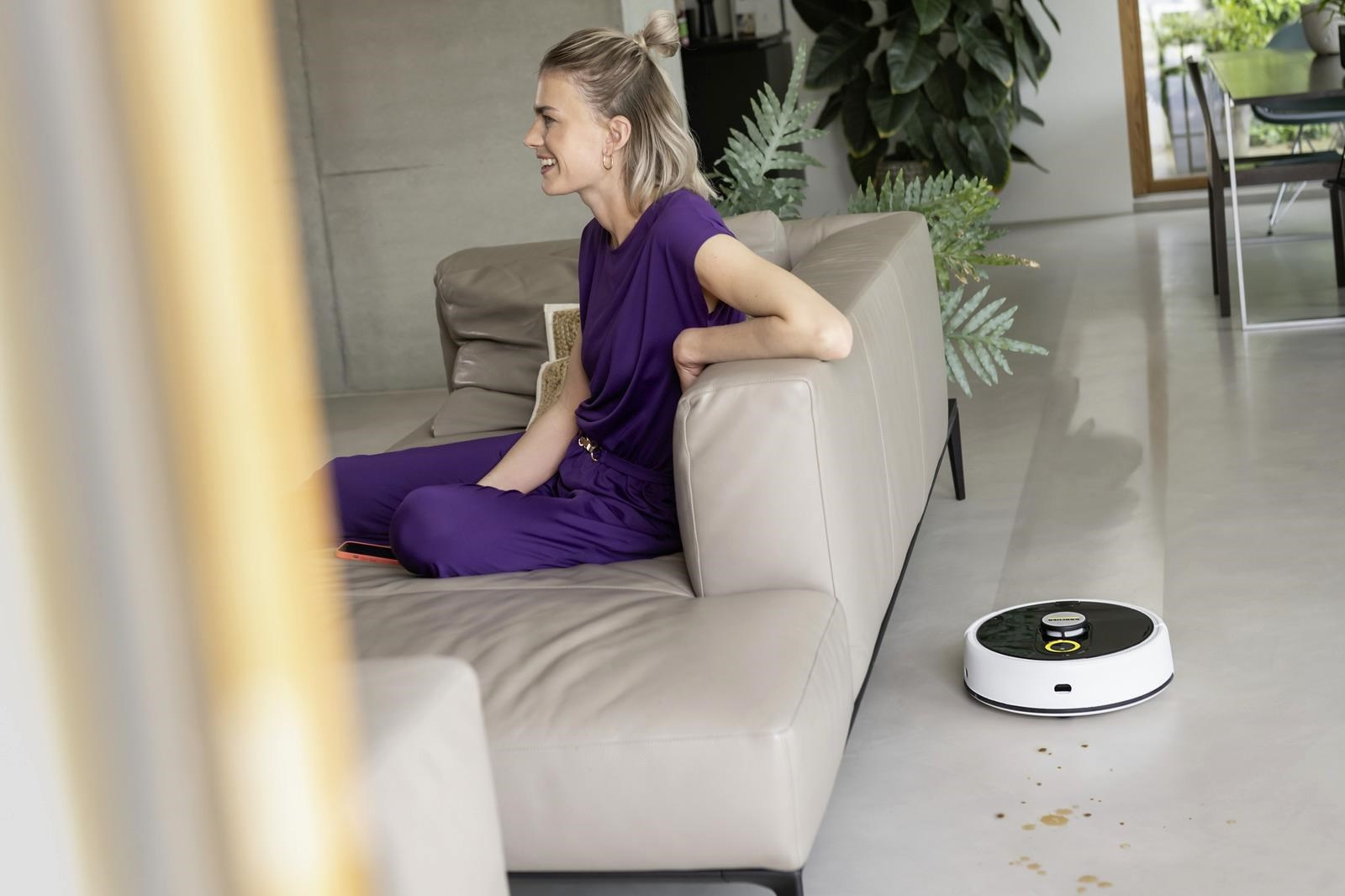 Podlahy vyčistíte stlačením jediného tlačidla: inteligentná robotická umývačka RCF 3 sa od teraz postará o inak únavné a časovo náročné vytieranie tvrdých podláh. Vďaka overenej technológii valca odstraňuje RCF 3 nielen odolnú špinu alebo zaschnuté tekutiny, ale tiež zbiera prach a drobné nečistoty. Pri tom automaticky rozpozná koberce a obratne sa im vyhne. RCF 3 má dve nádrže, ktoré mu umožňujú neustále zvlhčovať čistiaci valec čistou vodou a zvlášť zbierať nečistoty do nádrže na špinavú vodu. Tiež ľahké suché nečistoty sa ľahko zachytia a dopraví do nádrže na špinavú vodu. Pomocou praktickej ovládacej aplikácie je možné nastaviť rôzne režimy čistenia. Robota je teda možné veľmi flexibilne prispôsobiť najrôznejším potrebám a požiadavkám. Pre upratovanie sa robot pohodlne spúšťa prostredníctvom aplikácie alebo stlačením tlačidla na zariadení. Ak RCF 3 potrebuje pomoc, oznámi vám to hlasovým výstupom alebo prostredníctvom aplikácie. Odporúča sa umiestniť nabíjaciu stanicu na povrch, ktorý nie je vyrobený zo dreva, aby sa predišlo riziku poškodenia drevenej podlahy vlhkým valcom pri parkovaní robota stanici po dokončení čistenia.