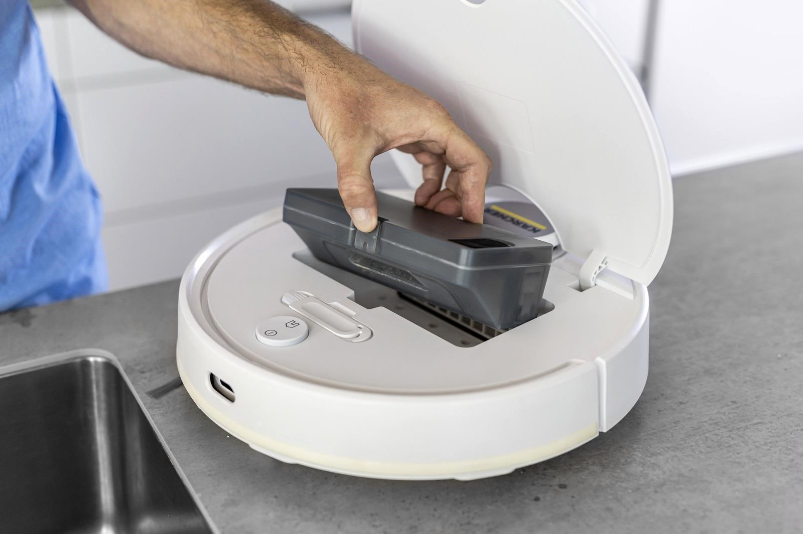 Pre ešte lepšie výsledky čistenia môže RCV 3 tiež mopovať. V prípade potreby použite na to určený mikrovláknový handričku, naplňte nádržku na čistú vodu a pustite vysávač do akcie. Robotický vysávač RCV 3 je možné použiť buď len na suché čistenie, alebo na mokré mopovanie, alebo s oboma možnosťami dohromady v kombinovanom režime čistenia.