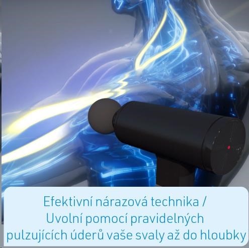 -Efektívna technika perkuse - uvoľní vaše hlboké svaly rovnomerne pulzujúcimi rázmi