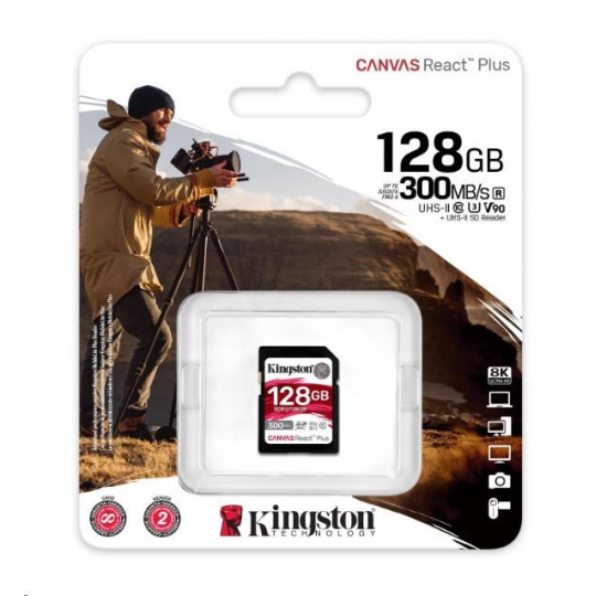 Kingston 128GB Canvas React Plus SDXC UHS-II 300R/260W U3 V90 pre Full HD/4K/8K