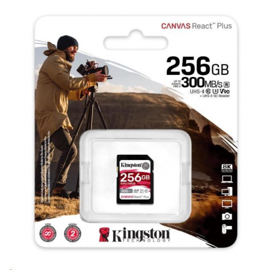 Kingston 256GB Canvas React Plus SDXC UHS-II 300R/260W U3 V90 pre Full HD/4K/8K