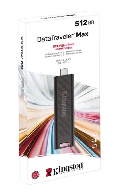 Kingston DataTraveler® Max je vysoko výkonný flash disk USB typu C®1ktorý využíva najnovší štandard USB 3.2 2. generácia pre rýchlosť čítania/zápisu záznamov do 1000/900 MB/s2. Jedinečné tvarované puzdro, navrhnuté s ohľadom na prenosnosť a pohodlie, chráni konektor, keď sa nepoužíva, a možno ho ľahko premiestniť jediným pohybom. DT Max ponúka vynikajúci výkon a rozšírenú kapacitu až do 1 TB3, čo z neho robí ideálne riešenie na prenos a ukladanie veľkých digitálnych súborov, ako sú fotografie v rozlíšení HD, videá v rozlíšení 4K/8K, hudba a ďalšie.