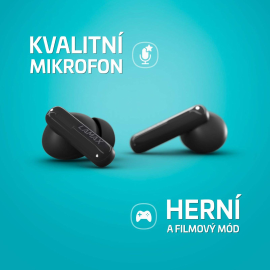 Perfektný zvuk v cool baleníNajlepší zvuk, aký si vieš predstaviť, v úplne top designe a s dlhou výdržou až 8 hodín, tak toto všetko môžeš mať s LAMAX Clips1 Plus. Bezdrôtové špuntové slúchadlá s nožičkou do uší sa automaticky bleskovo spoja cez Bluetooth 5.3 s tvojím telefónom a doprajú ti dokonalý pôžitok, nech už počúvaš čokoľvek. Gamerom určite neunikne Herný mód, ktorý zvýši pôžitok z hry. Dotykom si preskakuješ medzi tracky alebo prijímaš hovory, pri ktorých oceníš kvalitný mikrofón. To najlepšie je ale dokonale čistý a vyrovnaný zvuk, AAC, SBC kodeky, ANC pre potlačenie okolitého hluku a Transparency mode, aby bolo počúvanie perfektné aj bezpečné. Tak cestuj, pracuj alebo športuj štýlovo a v rytme.