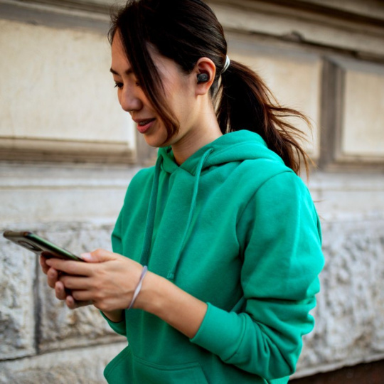 Či už voláš, hovoríš s hlasovým asistentom alebo posielaš hlasový správy, vždy ti zostanú voľný ruky. A pokojne môžeš používať iba jedno slúchadlo.