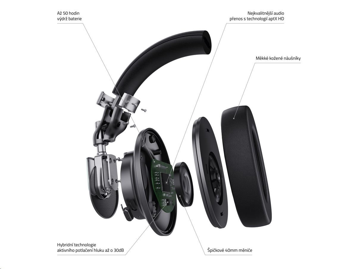Na prvý pohľad ťa zaujmú jedinečným titanovým dizajnom, na prvý dotyk sa ti zapáči luxusným spracovaním a na prvé počutie ťa presvedčí, že si si vybral správne. Slúchadlá vydržia na jedno nabitie až 50 hodín (25 hodín s aktivovaným ANC), takže sú pripravené na týždeň v officu aj na leto okolo zemegule. Ak potrebuješ voľné ruky, pri hovoroch ti pomôže zabudovaný mikrofón. A keby si chcel sa vrátiť ku starej dobrej klasike, pokojne ich môžeš aj zapojiť 3,5 mm jackom.
