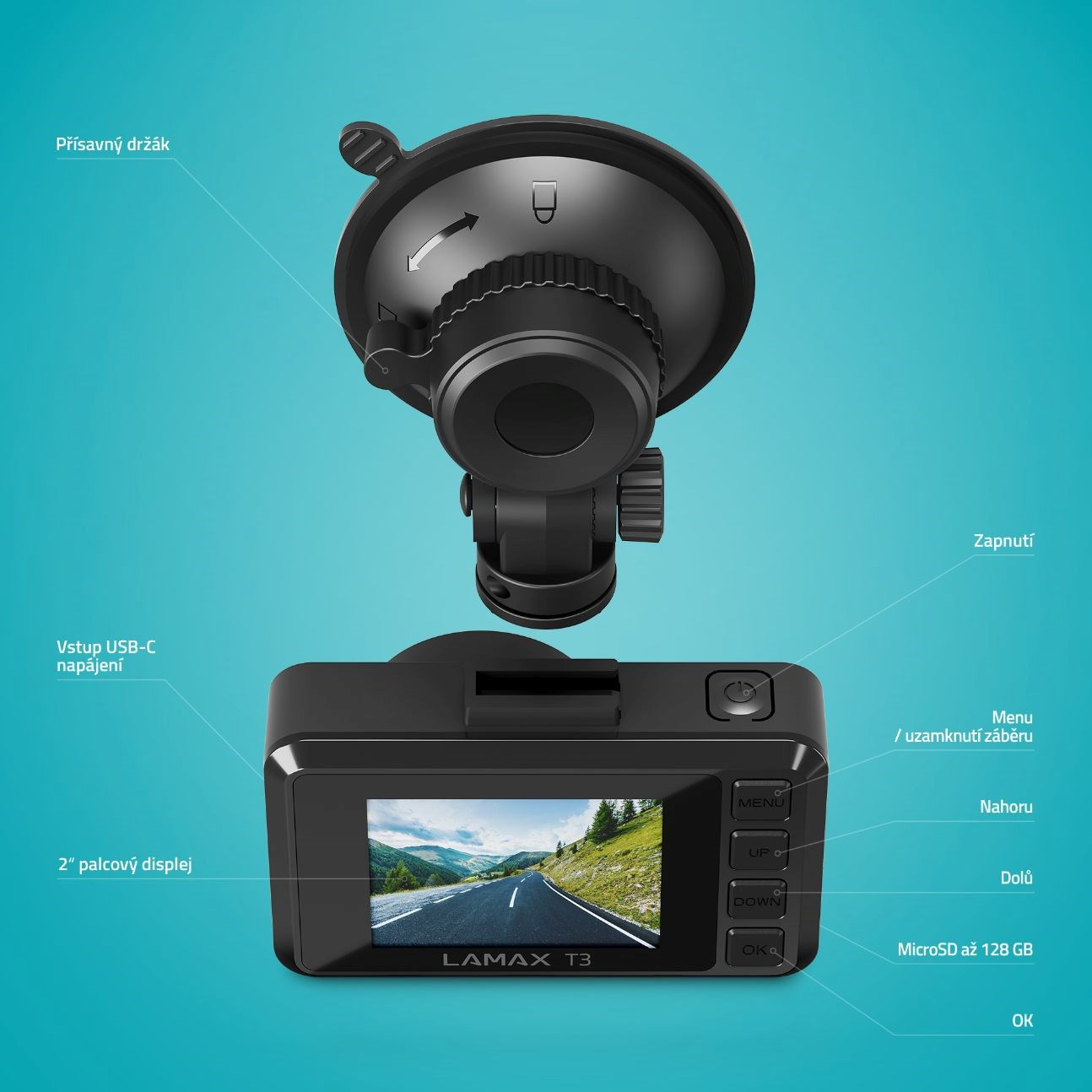 V jednoduchosti je krása, preto dizajn aj ovládanie autokamery sú presne také. Slovenské menu je navyše dokonale prehľadné a zobrazí sa ti na 2” displeji, ktorý má aj vychytaný šetrič. Kameru prepojíš prostredníctvom moderného USB-C konektora av jej výbave nechýba ani praktický prísavný držiak, aby držala, kde má.