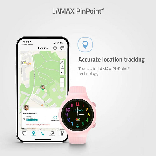 Díky druhé generaci technologie PinPoint® budete vždy přesně vědět, kde se vaše dítě nachází. Hodinky kombinují GPS, LBS, A-GPS, Wi-Fi a Akcelerometr, takže určují polohu s maximální přesností i tam, kde jiné modely ztrácejí signál.