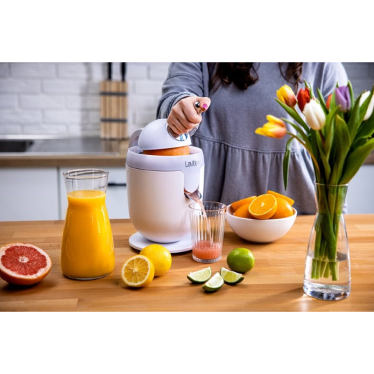 Šťava plná vitamínov jednoducho a rýchloZástancovia zdravého životného štýlu by vo svojej domácnosti nemali chýbať pomocník v podobe elektrického citrusovača Lauben Electric Citrus Juicer 110WT. Jeho čistý dizajn ozdobí každú kuchynskú linku, ktorú vďaka funkcii Anti Drip nepoškvrní ani kvapkou šťavy. Funkcia proti odkvapkávaniu zabezpečuje, že džús prúdi priamo do pohára alebo zostáva v zásobníku. Rýchlosť otáčok pri odšťavovaní je nastavená tak, aby si šťava uchovala maximum vitamínov. Chuť navyše nie je nijak ovplyvnená, pretože časti prichádzajúce do kontaktu s ovocím sú nerezové alebo z plastu splňujúceho najprísnejšie nariadenia EÚ a neuvoľňujú žiadnu pachuť ani arómu. Tvar kužeľa a nastaviteľná páka proces odšťavovania zefektívňujú a tichý chod umožňuje prípravu džúsu hocikedy. Bezpečný chod zabezpečujú protisklzové nožičky a poistka znemožňujúca spustenie, ak lis nie je riadne zostavený. Určite poteší aj ľahká údržba, odnímateľné časti stačí vložiť do umývačky.
