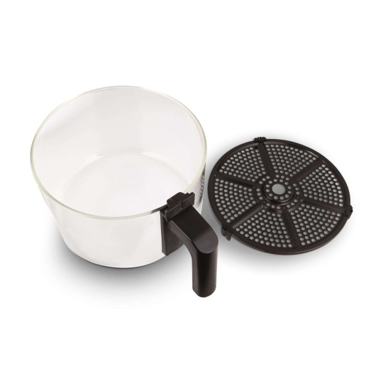 Teplovzdušná fritéza s objemom 4,5 l je dokonalým spoločníkom pri nastoľovaní zdravého životného štýlu. Vyprážanie horúcim vzduchom potrebuje na prípravu jedla až o 80% menej tuku, prípadne nie je potrebné použiť žiadny. Vaše pokrmy sa budú pýšiť parádnou chrumkavou kôrkou, ku ktorej dopomáha parná funkcia, zároveň sa rozplynú na jazyku bez toho, aby bola cítiť akákoľvek pachuť či odér teflónu alebo hliníka. Sklenený kôš totiž zaisťuje úplnú čistotu chuti. Celé kúzlo tkvie v unikátnej technológii Glass&SteamAir®.