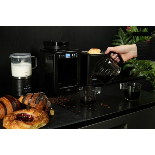 Lauben Grind&Drip Coffee Maker 600BB disponuje vstavaným mlynčekom, ktorý kávové zrná namelie na potrebnú hrubosť, a to v 2 úrovniach času mletia. Následne z takto namletých zŕn uvarí prekvapkávanú kávu. Avšak na prípravu je možné využiť aj klasické mleté kávy, súčasťou balenia je aj praktická odmerka. Nezvonil budík alebo sa práca pretiahla? Často nastanú okolnosti, pri ktorých vám káva vychladne, ale to sa už nestane. Funkcia Keep Warm udržuje kávu teplú, takže si na nej vždy pochutíte.