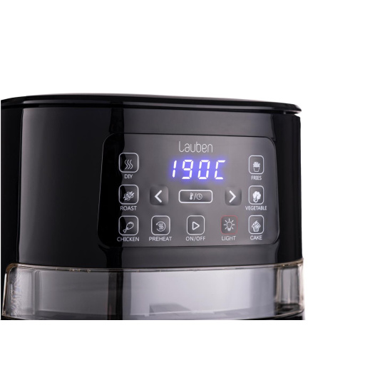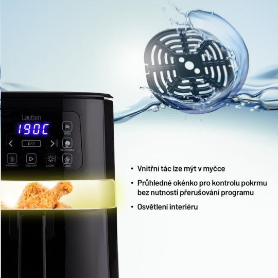 Ovládanie Lauben Air Fryer je intuitívne a zvládne ho každý. Požadovaný program si nastavíte pomocou tlačidiel a na displeji môžete kontrolovať teplotu a dobu prípravy. Vďaka priehľadnej časti fritézy a osvetleniu vnútra môžete pokrm ľahko skontrolovať aj vizuálne. Všetky komponenty, ktoré sa v priebehu prípravy jedla ušpinia, je možné umývať v umývačke riadu. Čerešničkou na torte je vkusný minimalistický dizajn, vďaka ktorému môžete fritézu bez obáv vystaviť na kuchynskú linku, i pokiaľ si potrpíte na estetickosť.