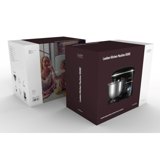 Kuchynský robot Lauben Kitchen Machine 550BC klame telom. Nie je žiadny obor, zato jeho výkonný motor so silou 1400 W si poradí aj s najtuhším cestom. Rovnako ľahko tak pripravíte piškótové cesto alebo chlebové. Záťaž pomáhajú prístroju zvládať celokovové prevody a použitý materiál zaručuje dlhú životnosť. Akonáhle sa pustíte do varenia, nie je potrebné trocháriť, misa z prémiovej nerezovej ocele pojme až 5,5 l. Bez problémov tak pripravíte aj hostinu pre rodinu alebo stretnutie s priateľmi.