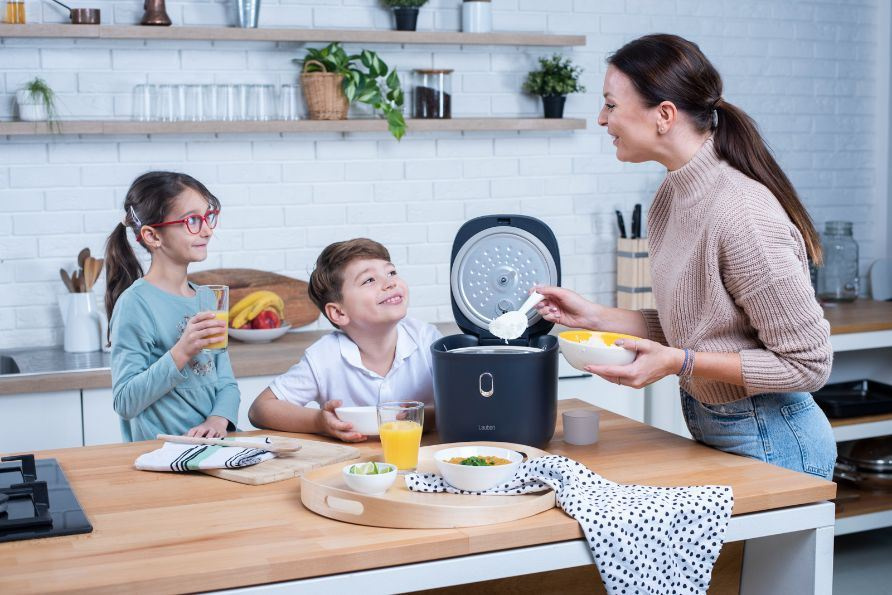 Zbaví vás až 40 % sacharidov v ryžiAk chcete jesť zdravšie, multiúčelový ryžovar Lauben Low Sugar Rice Cooker 3000AT by vám nemal chýbať. Jeho funkcia low sugar odstráni až 40 % sacharidov z ryže. Prístroj si poradí so všetkými druhmi ryže, ale aj s ďalšími ingredienciami, napríklad strukovinami. Môžete si vybrať zo 6 režimov, ktoré je však možné ručne upraviť. Prémiový neprilnavý keramický povrch jeho 3l nádoby pripraví jedlo pre celú rodinu bez potreby používania tuku a obáv z pripálenia. Teší sa z funkcie Keep Warm, ktorá udrží pokrmy teplé bez rizika rozvarenia, odloženého štartu alebo ochrany proti pretečeniu a technológie Cool Touch, vďaka ktorej sa nepopálite o ryžovar. Dotykové tlačidlá uľahčujú nastavenie ryžovaru. Jednoduchá údržba je samozrejmosťou, stačí vložiť vnútornú časť do umývačky. Ako inšpiráciu sme pridali aj kuchárku.