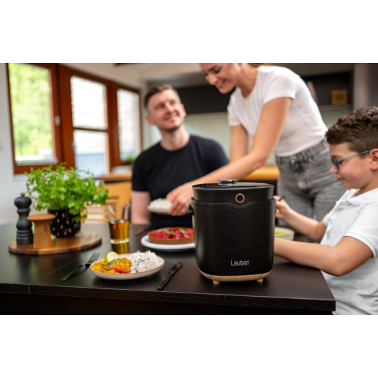 Premeniť varenie na zábavu, ktorá navyše zaberie minimum času, je teraz vďaka Lauben Multifunkčný rýžovar 2000BW jednoduchšie než kedykoľvek predtým. Viacúčelový rýžovar s keramickým nepremastiteľným povrchom vnútorného hrnca o objeme 2 l sa stane dokonalým pomocníkom na ceste ku zdravému životnému štýlu. Jeho 12 prednastavených programov si poradí s prípravou rôznych jedál, ktoré aj začiatočník uvarí ako šéfkuchár. Pomocou nerezového parníka na dusenie v pare môžete variť ešte zdravšie, a to stlačením jediného tlačidla. Ak vám však program nevyhovuje, pohodlne si všetko nastavíte aj manuálne. Manipuláciu a ovládanie uľahčuje praktické madlo, dotykový displej a technológia Cool Touch, ktorá je zároveň bezpečnostným prvkom zabraňujúcim popáleniu. Užívateľsky prívetivá údržba, keď stačí vnútorný hrniec vložiť do umývačky, tiež ušetrí veľa času. Prémiový dizajn s dreveným dekorom ozdobí každý interiér.