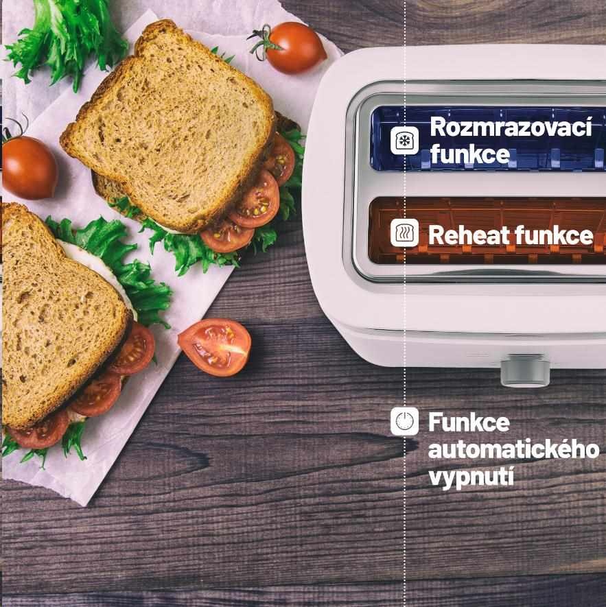 V topinkovači môžete okrem opekania pečiva aj rozmrazovať, stačí stlačiť tlačidlo Defrost.