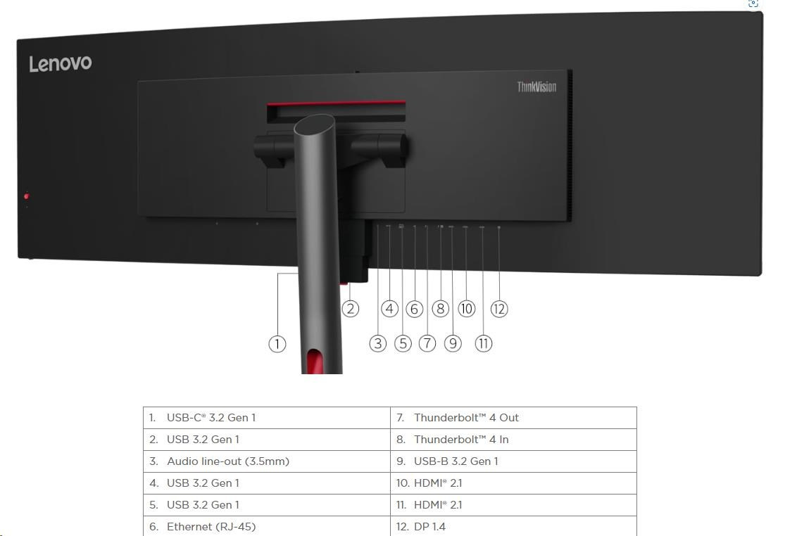 LENOVO LCD ThinkVision P49w-30 - 49" IPS,matný,32:9,5120x1440,178/178,6ms,350cd,2000:1,DP,HDMI,THb,VESA,3Y