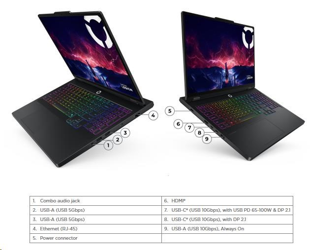 LENOVO NTB Legion Pro 5 16AFR10 - Ryzen 9 9955HX,16" WQXGA OLED,32GB,1TSSD,HDMI,RTX 5070 8GB,W11H,3Y CC