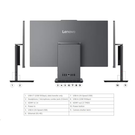 | Standartné porty | 1x USB-A (USB 10Gbps / USB 3.2 Gen 2) 2x USB-A (Hi-Speed USB / USB 2.0) 1x HDMI®-in 1.4 1x HDMI®-out 2.1 TMDS 1x Ethernet (RJ-45) 1x power connector |