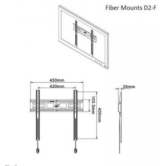 SPOLEHLIVÝ NÁSTĚNNÝ FIXNÝ DRŽÁK PRO ZAVĚŠENIE TV 26-55", NOSNOSŤ 18KG Televízny držiak veľmi kvalitný za skvelú cenu. Pevný držiak na všetky typy televízorov, ktoré majú uhlopriečku 26" až 55" a ich hmotnosť nie je vyššia ako 18kg. Tento držiak podporuje VESA štandardy 75x75 až 400x400. Po zavesení televízora na držiak bude vzdialenosť TV od steny len 26mm. Zabezpečenie televízora proti náhodnému vypadnutiu je automatickými západkami, ktoré ľahko uvoľníte pomocou táhel - tie sú uschované za televízorom. Držiak je dodávaný vrátane montážneho materiálu. Lacný držiak na televíziu Fiber Mounts D2-F Technické údaje: maximálne zaťaženie držiaka 18kg VESA štandardy 75x75 až 400x400 odporúčaná uhlopriečka televízie 26" - 55" vzdialenosť televízora od steny je 26mm integrovaná vodováha pre jednoduchú montáž veľmi rýchle a bezpečné upevnenie televízie na držiak, rovnako ľahké uvoľnenie pomocou 2 táhel kvalitná a pevná konštrukcia dodaný vrátane montážneho materiálu farba čierna záruka 5 rokov Držiak podporuje VESA štandardy na zavesenie televízorov: VESA 75x75 VESA 100x100 VESA 200x100 a 100x200 VESA 200x200 VESA 300x200 a 200x300 VESA 300x300 VESA 400x200 a 200x400 VESA 400x300 a 300x400 VESA 400x400 Na fixný držiak Fiber Mounts D2F je možné zavesiť všetky značky a typy televízorov, ktoré podporujú niektorý z vyššie uvedených VESA štandardov a ich hmotnosť nie je vyššia ako 18kg. Veľkosť uhlopriečky nie je podstatná, uvedené rozmedzie je iba informatívne.