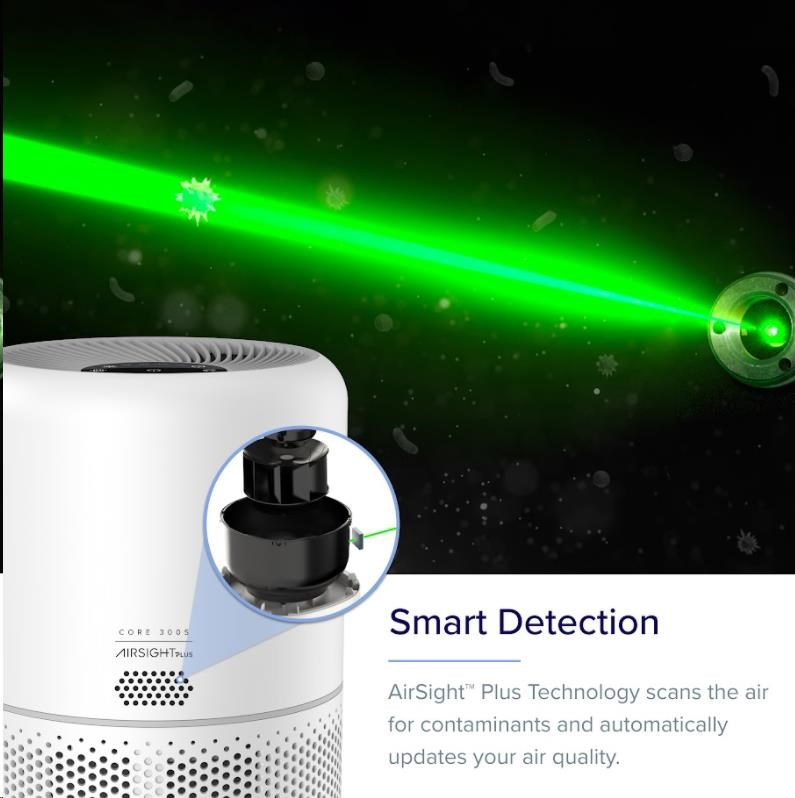 Technológia AirSightTM PLUS je postavená na skenovaní kvality vzduchu špeciálnym prachovým laserovým senzorom. Ten je schopný zaznamenať znečistenie časticami až 3x menšími ako bežne používané infračervené senzory.