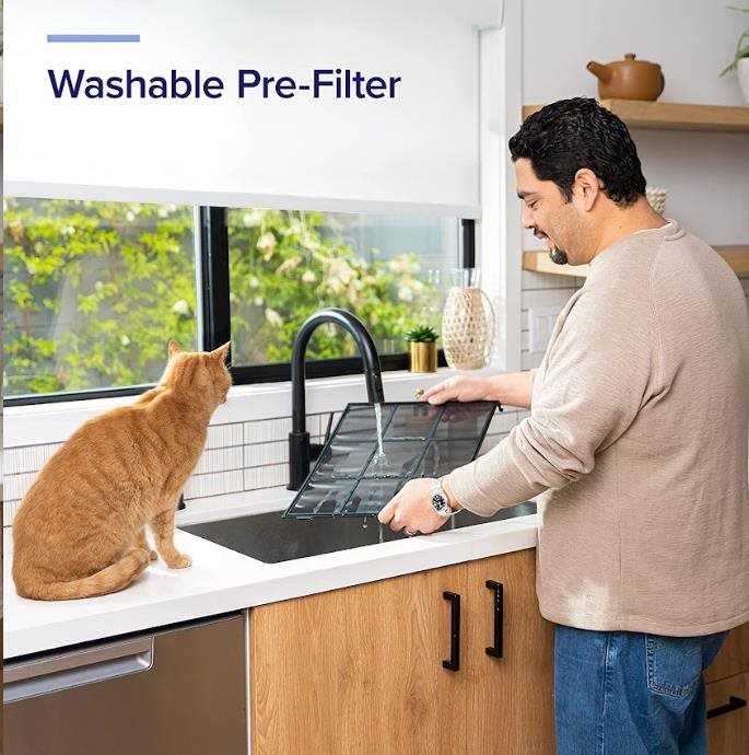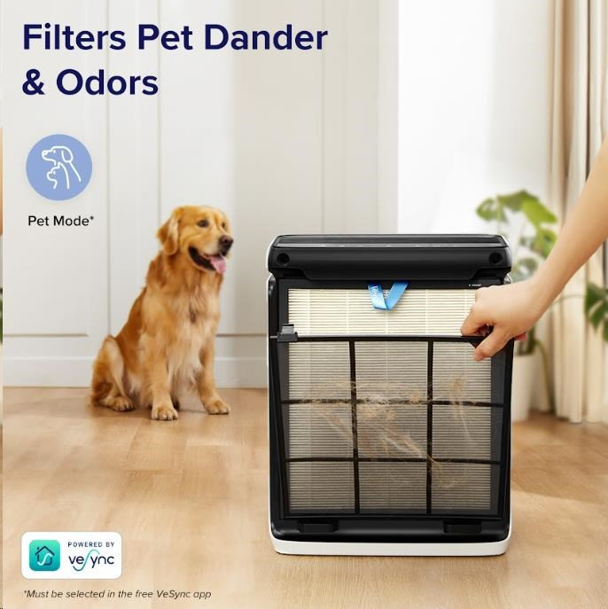 Táto čistička vzduchu je ideálna pre majiteľov domácich zvierat, pretože jej veľký vstup vzduchu vo tvaru písmena U pomáha predchádzať ucpávaniu srstí, takže filtračný systém môže vždy účinne plniť svoju prácu. Stačí klepnúť na režim Pet Mode v bezplatnej aplikácii VeSync a čistička Vital 100S bude striedavo používať stredné a vysoké otáčky, aby znížila zápach a odstránila srst domácich zvierat. Tým udrží váš domov svieži a energeticky úspornejší. Zároveň sú tie najväčšie nečistoty zachytené na omyvateľnom predfiltre, ktorý jednoducho umyjete a ušetríte od opotrebovania filtra a tým aj svoju peňaženku.