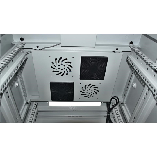 LEXI-Net 19" stojanový rozvaděč 37U 600x600 rozebiratelný, ventilační jednotka, termostat, kolečka, 600kg, sklo, šedý