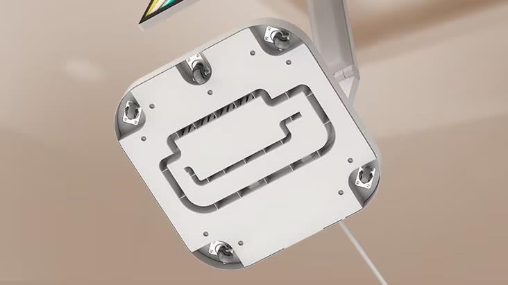 Vďaka pevným kolieskam môžete monitor ľahko premiestniť kamkoľvek potrebujete, a to s plynulým a stabilným pohybom. Skrytý adaptér navyše udržiava káble elegantne skryté, čo zabezpečuje čistý a usporiadaný vzhľad.
