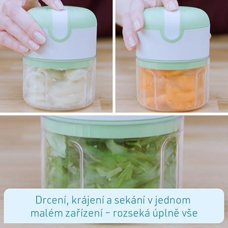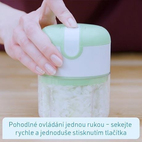 Presné čepele rozdrtí úplne všetko bez zvyškov. Aj keď chcete nasekať len jeden strúčik cesnaku - žiadny problém: vložte ho do nádoby - nasaďte viečko - a stlačením jediného tlačidla máte dokonale nasekaný cesnak.