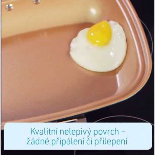 Livington Black Doubletta je inovativným vylepšením miliónkrát predaného kuchynského hitu Doubletta. V čom spočíva tajomstvo novej Livington Black Doubletty? Čtverečný tvar Vám zabezpečí dostatok miesta pri varení a umožní Vám prípravu dvoch jedál naraz. Livington Black Doubletta má extrémne odolné dno, ktoré ukláda teplo na oboch stranách, pre ešte lepšie výsledky. Vďaka prepracovanej cirkulácii sa teplo vo vnútri panvice rozloží okolo Vášho jedla rovnomerne, napríklad pri šetrnom, pomalom dusení, alebo varení v pare, alebo tiež pri grilovaní. Povrch panvice je potiahnutý nepriľnavou vrstvou, vďaka ktorej sa nič neprilepí, ani nepripáli. Flexibilné, silikónové tesnenie a ergonomická rúčka s geniálnym magnetickým uzáverom držia panvicu pevne uzavretú. Tým je zaručené perfektné varné prostredie. Nadbytočná para sa vypaľuje otvory na to určenými. Inak, než u bežných varných systémov, môžete Livington Black Doublettu kedykoľvek počas prípravy jedál otvoriť: napríklad keď chcete jedlo dochutiť korením, podliat vodou, alebo len ochutnať! Takto budete variť oveľa šetrnejšie, pod nižším tlakom. Vaše jedlá budú chutiť intenzívnejšie a na ich úžasnú chuť určite nezabudnete! A navzdory všetkému varíte pomocou Livington Black Doubletta oveľa rýchlejšie, než s ktoroukoľvek inou panvicou.