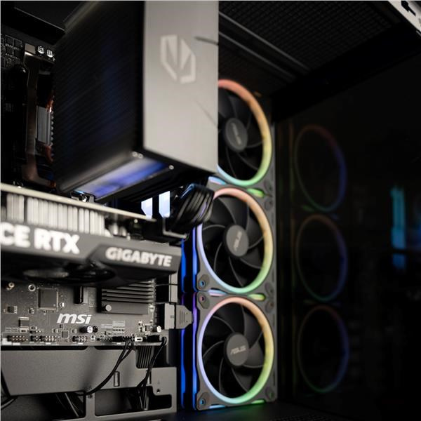 Štýlová skriňa s presklenou bočnicou a štyrmi ARGB ventilátormi.