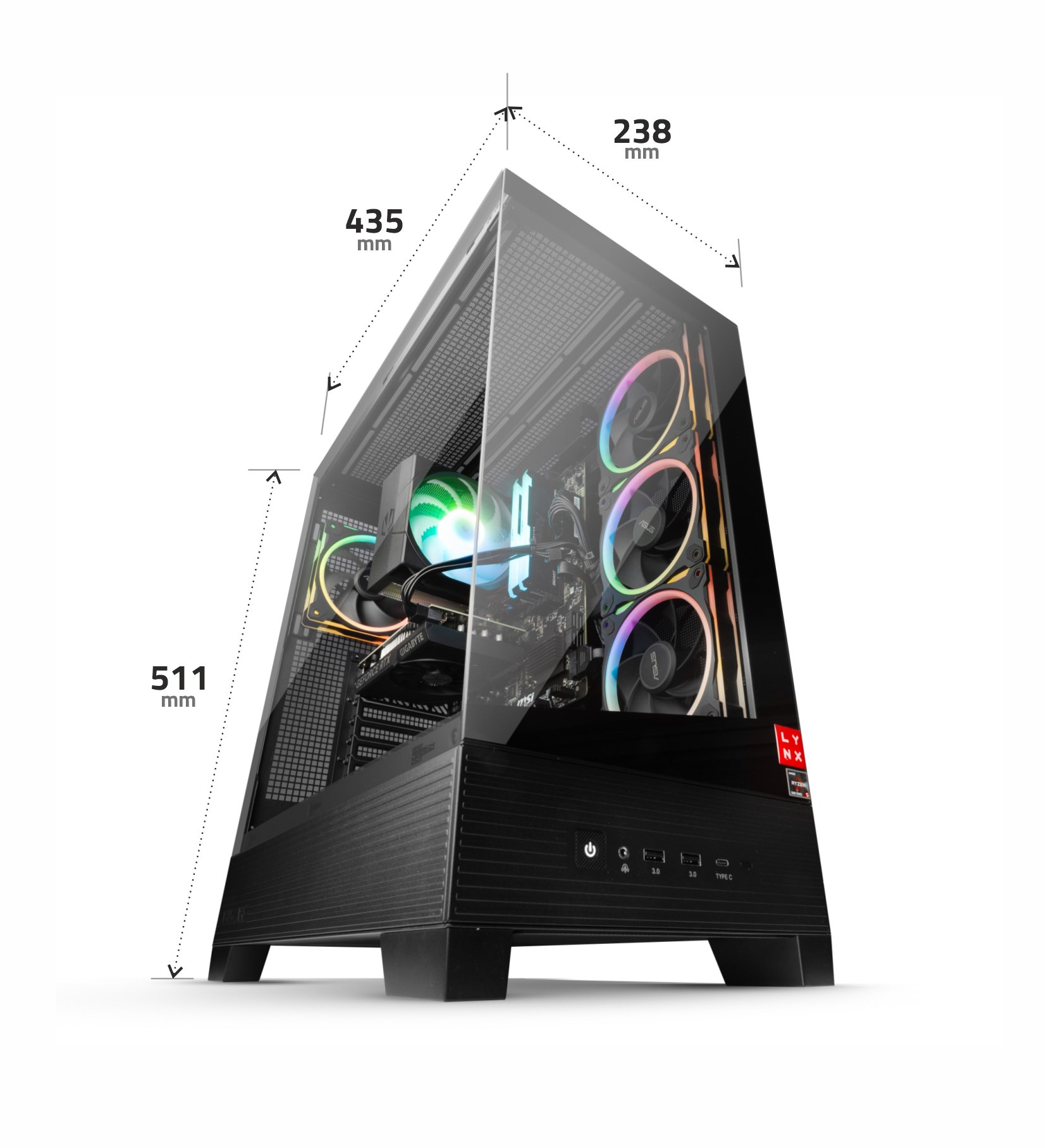 Základem sestavy je deska s čipovou sadou B840 osazená 6 jádrovým procesorem AMD Ryzen 7600X, který disponuje technologií HyperThreading pro plynulejší multitasking, pracující na frekvenci 4.7 GHz, nebo až 5.3 GHz s technologií turbo. Paměti RAM značky Kingston jsou pro sestavy LYNX standardem, v této sestavě se jedná o paměti s kapacitou 32 GB DDR5 (2x 16GB). Plynulý obrazový výstup je zajištěný grafickou kartou NVIDIA GeForce RTX 5060, která disponuje 8GB paměti GDDR7. V této sestavě nebrzdí ani uložiště je zde SSD disk 1 TB M.2 PCIe NVMe pro veškerá potřebná data a software. Dostatečné napájení zajištuje 550W zdroj. Sestava je dodávaná včetně nového operačního systému Windows 11 Home.