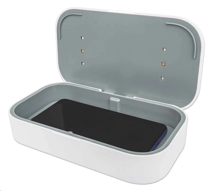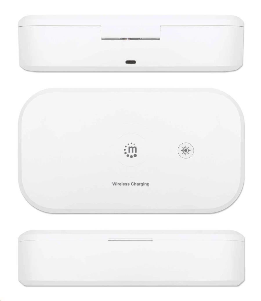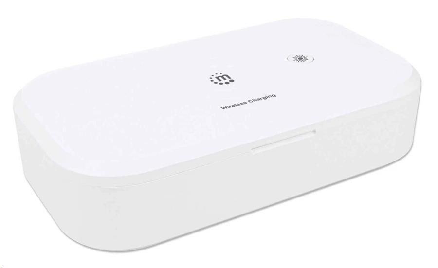 MANHATTAN UV-C dezinfekčné puzdro s bezdrôtovým nabíjaním, 10W bezdrôtová nabíjacia podložka, biela