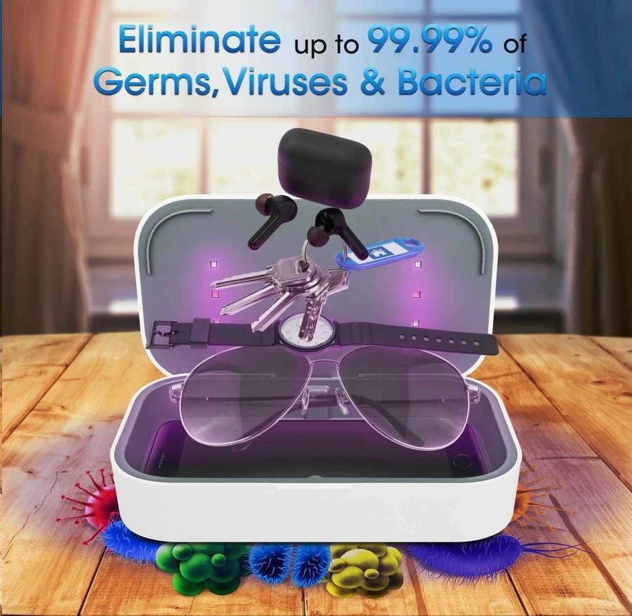 - Dezinfikuje smartfóny, hodinky, kľúče, šperky, kreditné karty, masky, cumlíky, slúchadlá a ďalšie