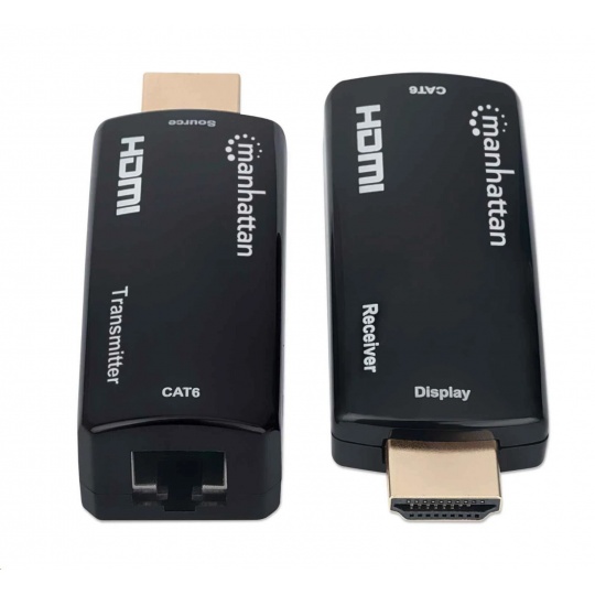 Kompaktná súprava HDMI cez Ethernet 1080p od spoločnosti Manhattan dokáže pripojiť takmer akýkoľvek digitálny zdroj HDMI (napr.g., herná konzola [PlayStation®, Xbox® a ďalšie], prehrávač Blu-ray, satelitný prijímač, digitálny rekordér atď.) k HD displeju alebo projektoru na vzdialenosť až 60 m (196 ft.) s jedným ethernetovým káblom Cat6. Súprava poskytuje spoľahlivý prenos videa s rozlíšením 1080p@60 Hz a viackanálového zvuku na väčšie vzdialenosti ako samotné káble HDMI. Jeho tenký a kompaktný dizajn je ideálny na inštaláciu v stiesnených priestoroch alebo prakticky kdekoľvek.